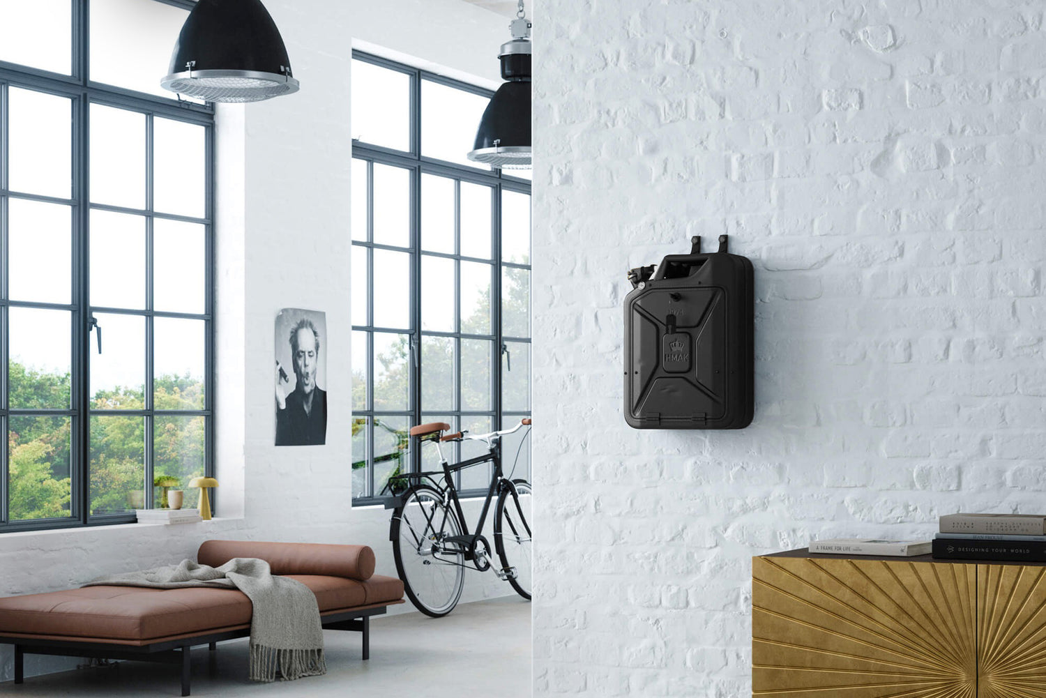Authentic WWII-style jerry cans, meticulously upcycled into handsome drinks cabinets by skilled Danish craftsmen.
