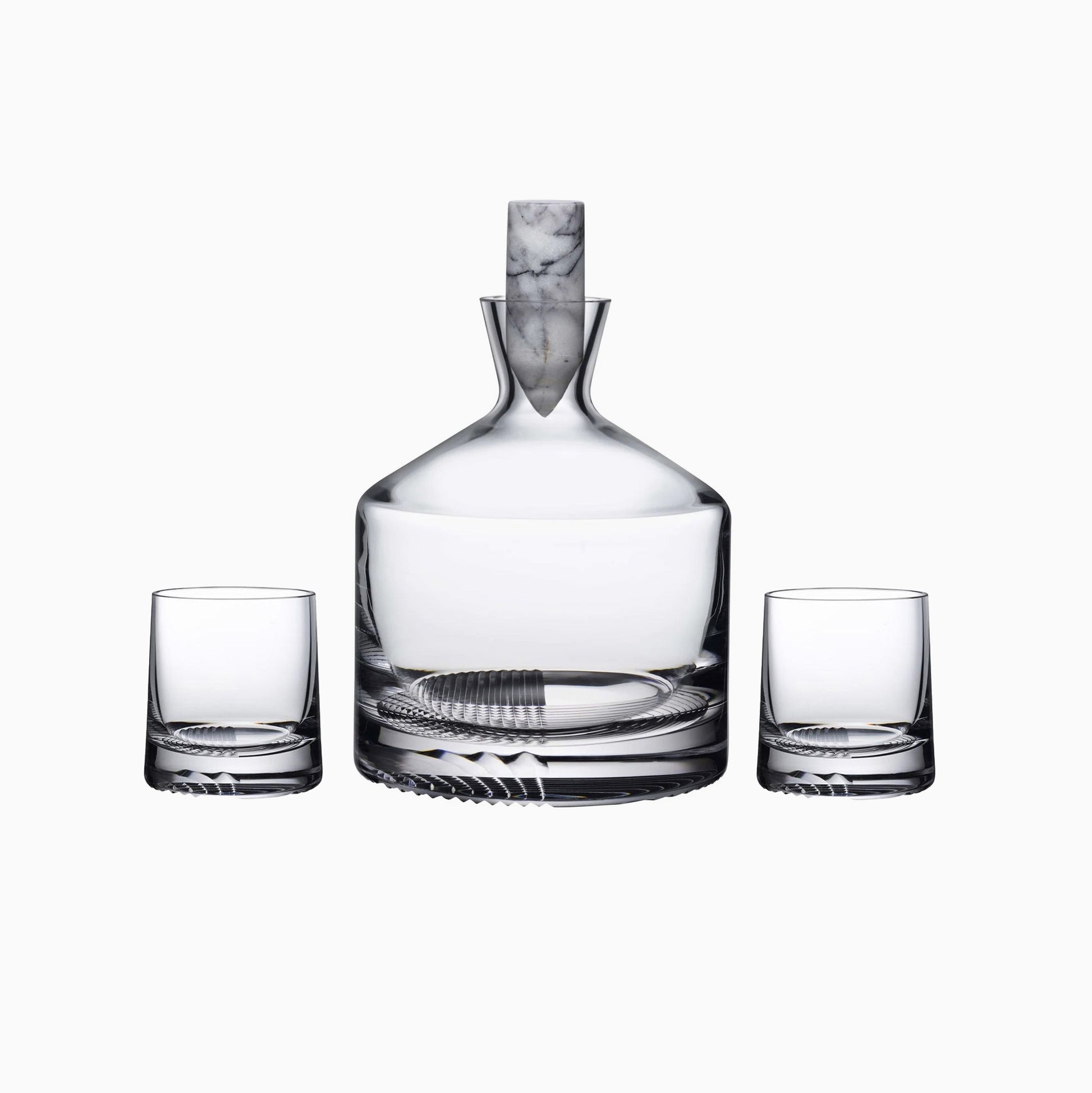Refined, sculptural, and distinctly high-end. This luxury whisky set is what results when a celebrated minimalist designer is tasked with balancing ancient heritage and modern design. Named “Alba” — the Gaelic word for Scotland and the proud, spiritual home of whisky — it captures that connection through clean lines, fine materials, and quiet, subtle detailing. Mouth-blown from lead-free crystal, both pieces have real weight and clarity, with tartan-etched bases that catch the light wonderfully in shifting patterns. The decanter’s solid marble stopper adds contrast, gravitas and a sense of permanence;a piece of modern craftsmanship with the soul of something far older.