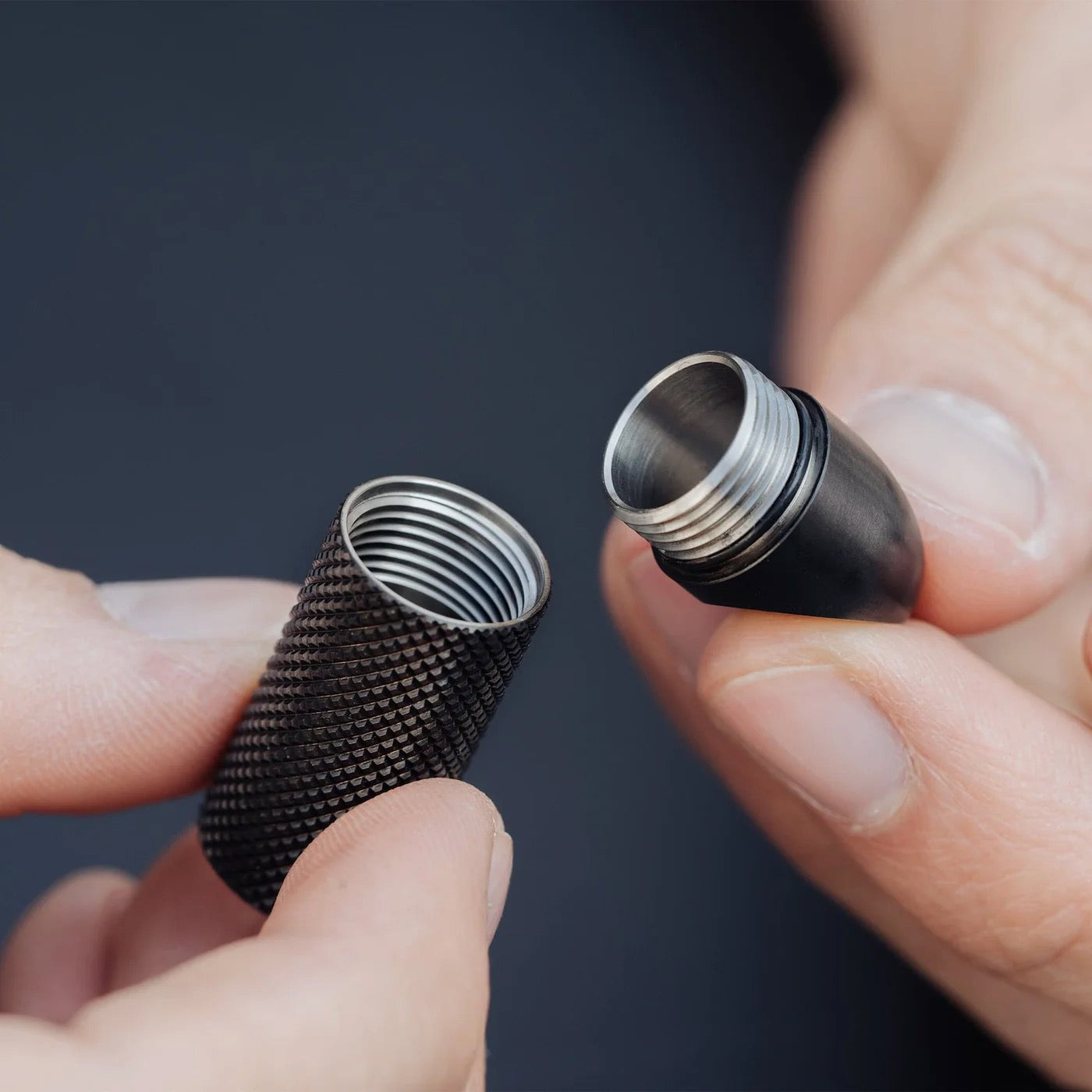 The idea is simple. Unscrew the back, drop in a tightly rolled banknote or a small emergency item, then seal it up again. The threading is smooth, the cap closes with a clean mechanical feel, and once it is locked you would never guess what is inside.