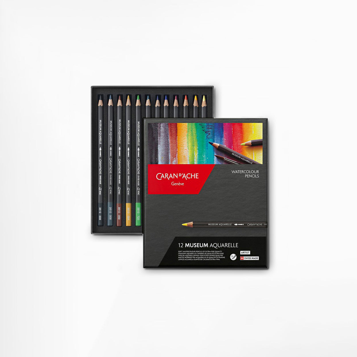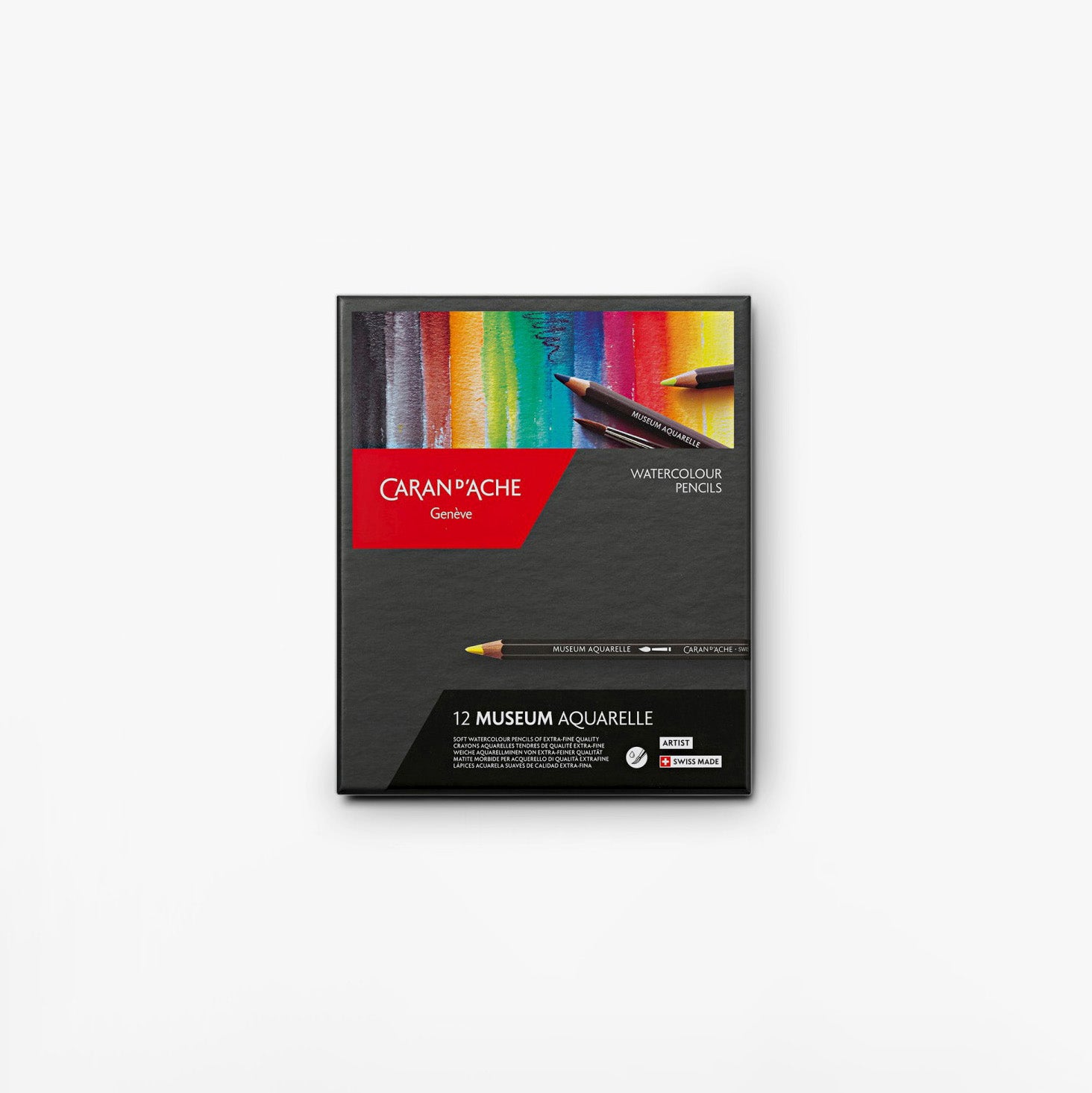 Caran D'Ache have produced some of the world's finest writing implements for over a century. Designed in their Geneva-based workshop, their colouring pencils are famous for utilising the highest quality materials and construction techniques. The Museum range represents the finest watercolour pencils they offer, offering professional lightfast ratings, maximum colour saturation and the flexibility to work as conventional pencils or watercolours with a splash of water. Housed in an attractive presentation box with individual cut-outs, these are the best of the best.