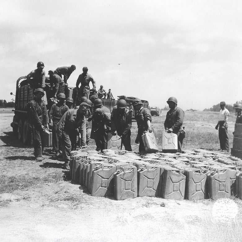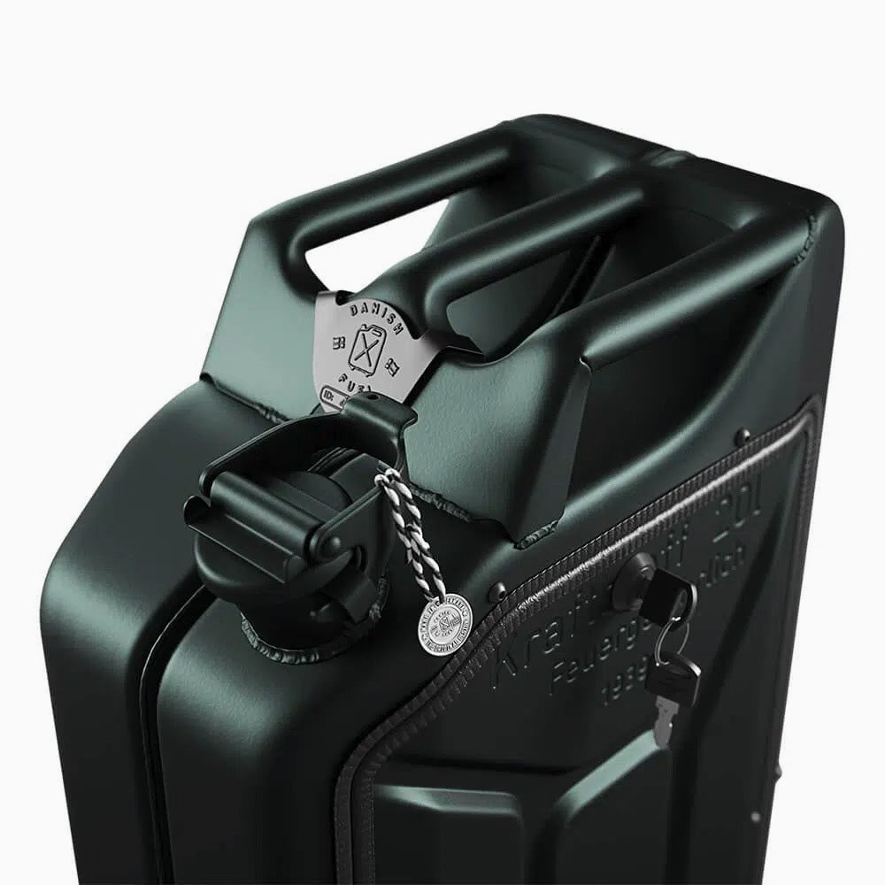 Once built for the battlefield, these original WWII-style jerry cans have been reworked into striking bar cabinets with real history in their seams. Each one is an authentic, upcycled can, hand-cut, cleaned, and refinished so every piece carries its own marks and story. Open it up and the rugged steel shell reveals a neatly crafted oak interior with shelves for bottles, glasses or bar tools. The contrast between hard metal and warm wood feels both modern and timeless — a clever transformation of military utiliary into something refined and elegant. A true conversation starter that's built to last; the two hallmarks of all legendary design.
